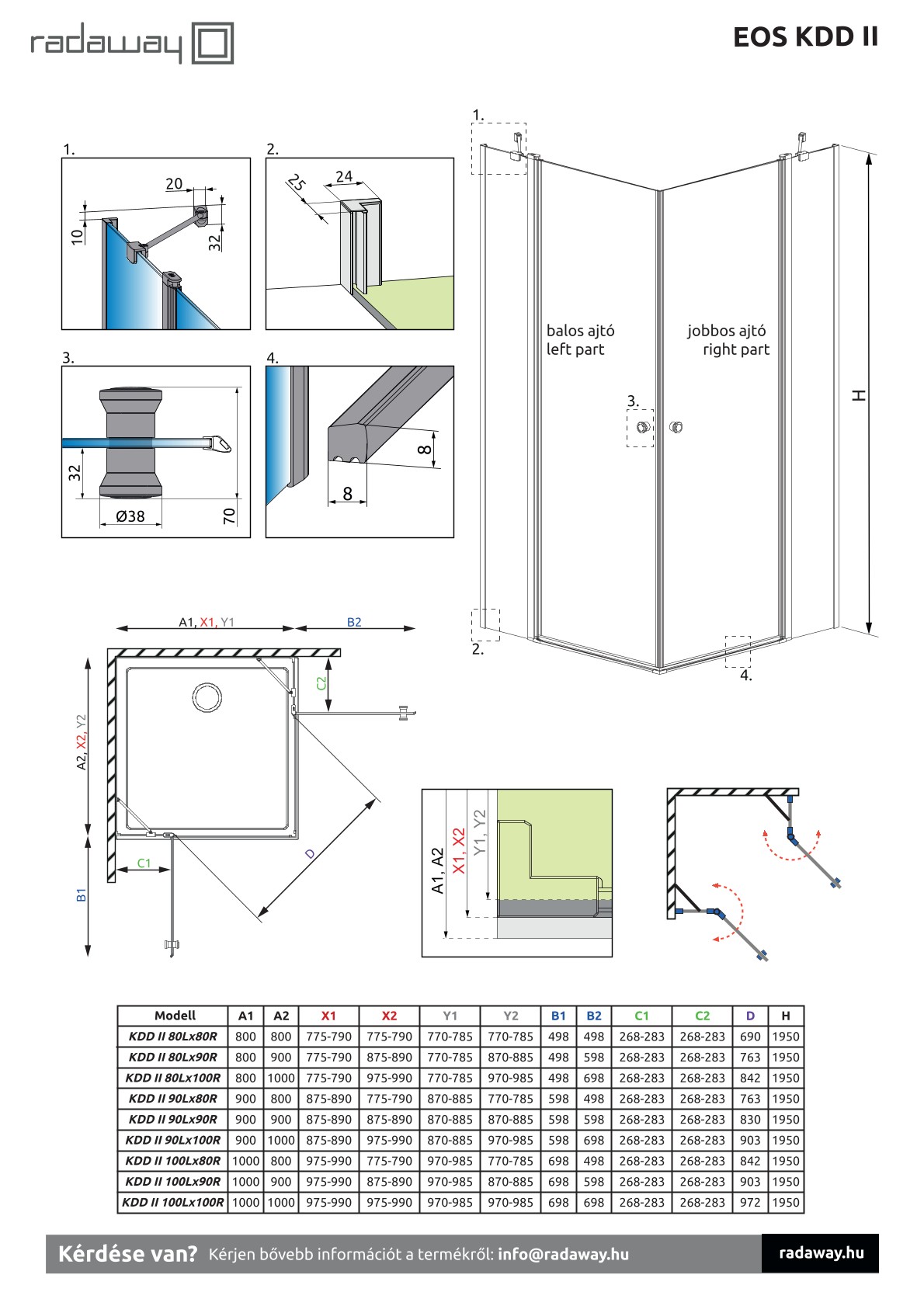 • Eos KDD II 90 Balos vagy Jobbos, króm - 6 x 900 x 1950 mm