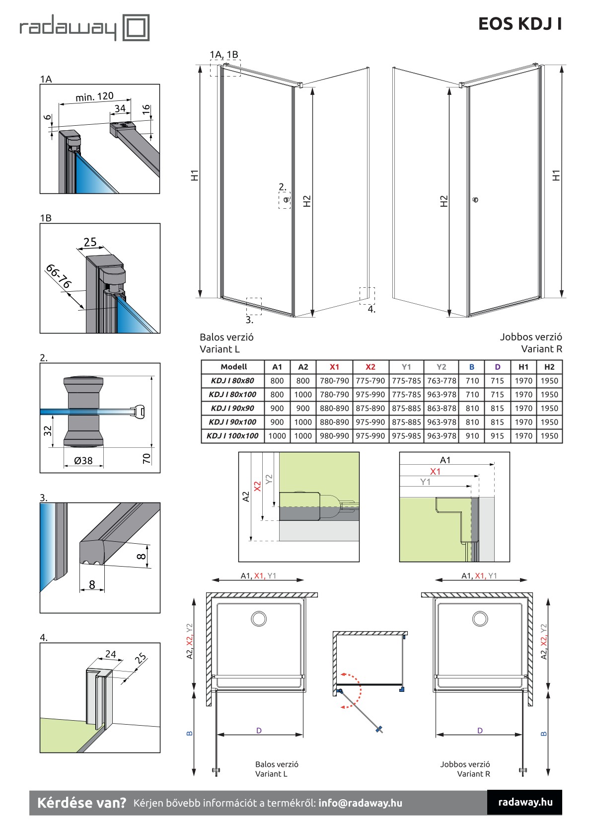 • Eos KDJ I 80 B x 100, króm - 6 x 800 x 1000 x 1970 mm