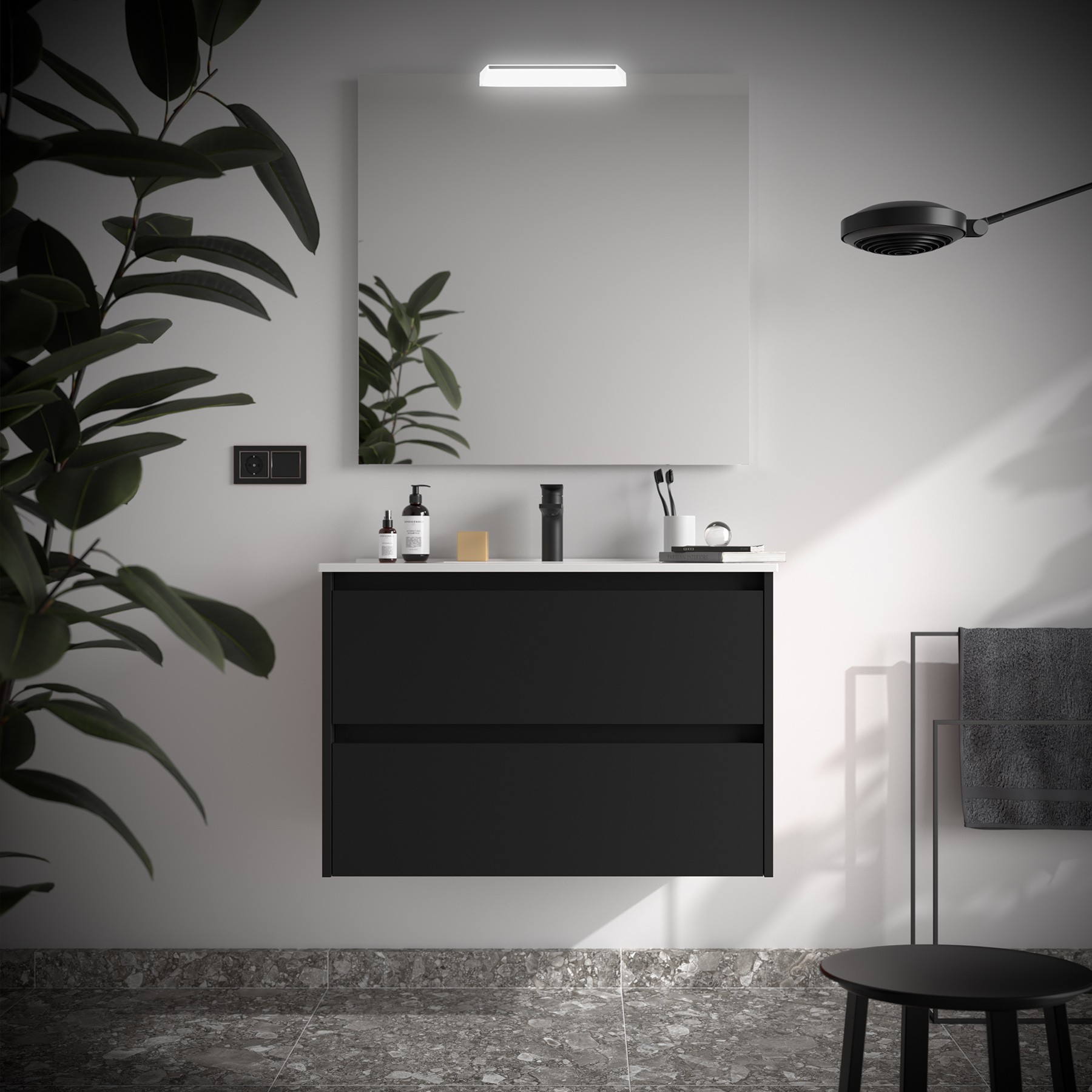 Salgar Noja 800, Matt fekete színben, Bútor 2 fiókkal + mosdóval, 797 x 450 x 540 mm, cikksz: 106126