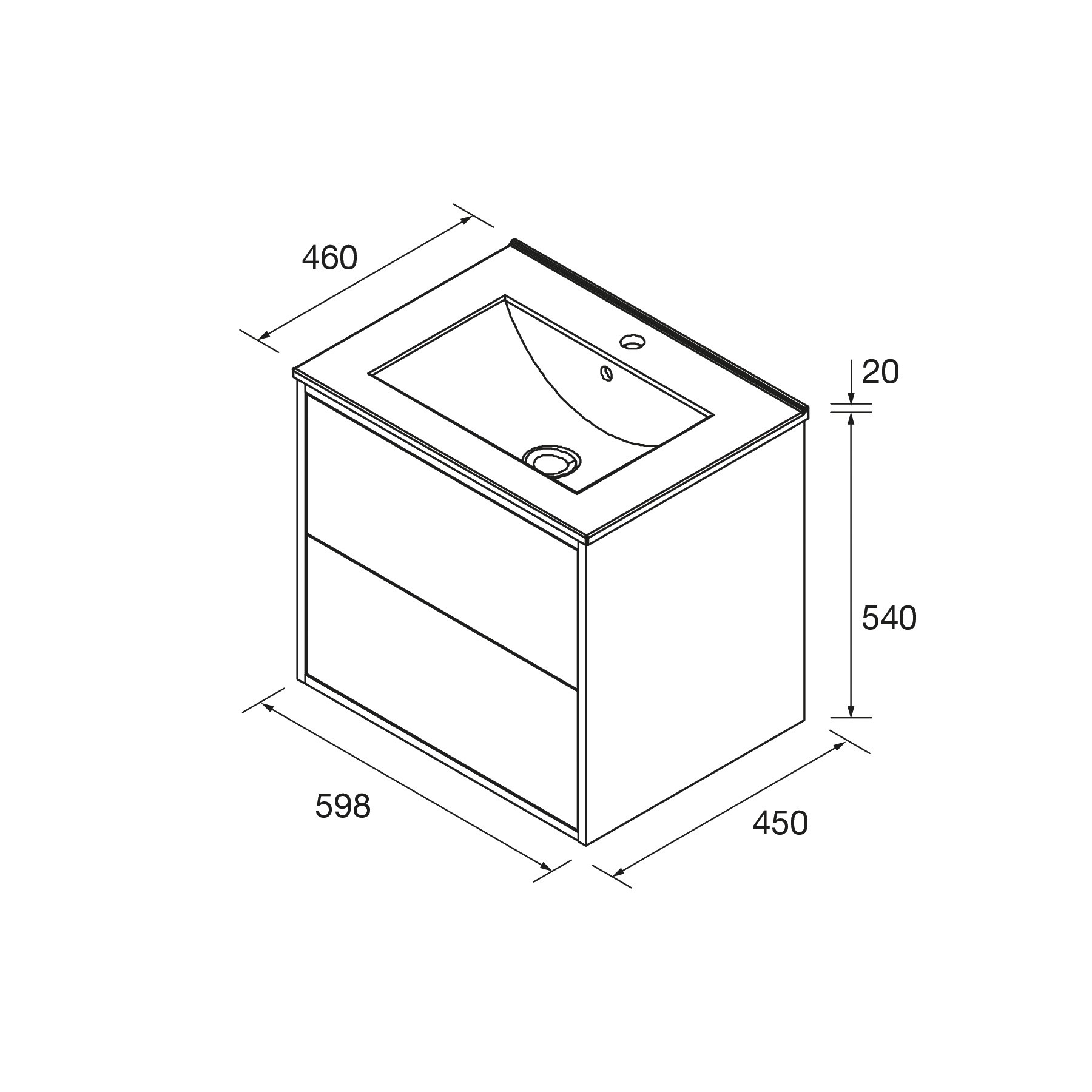Salgar Optimus 600 White Satin, alsószekrény+mosdó, 598x450x540 mm, cikksz.: 104607