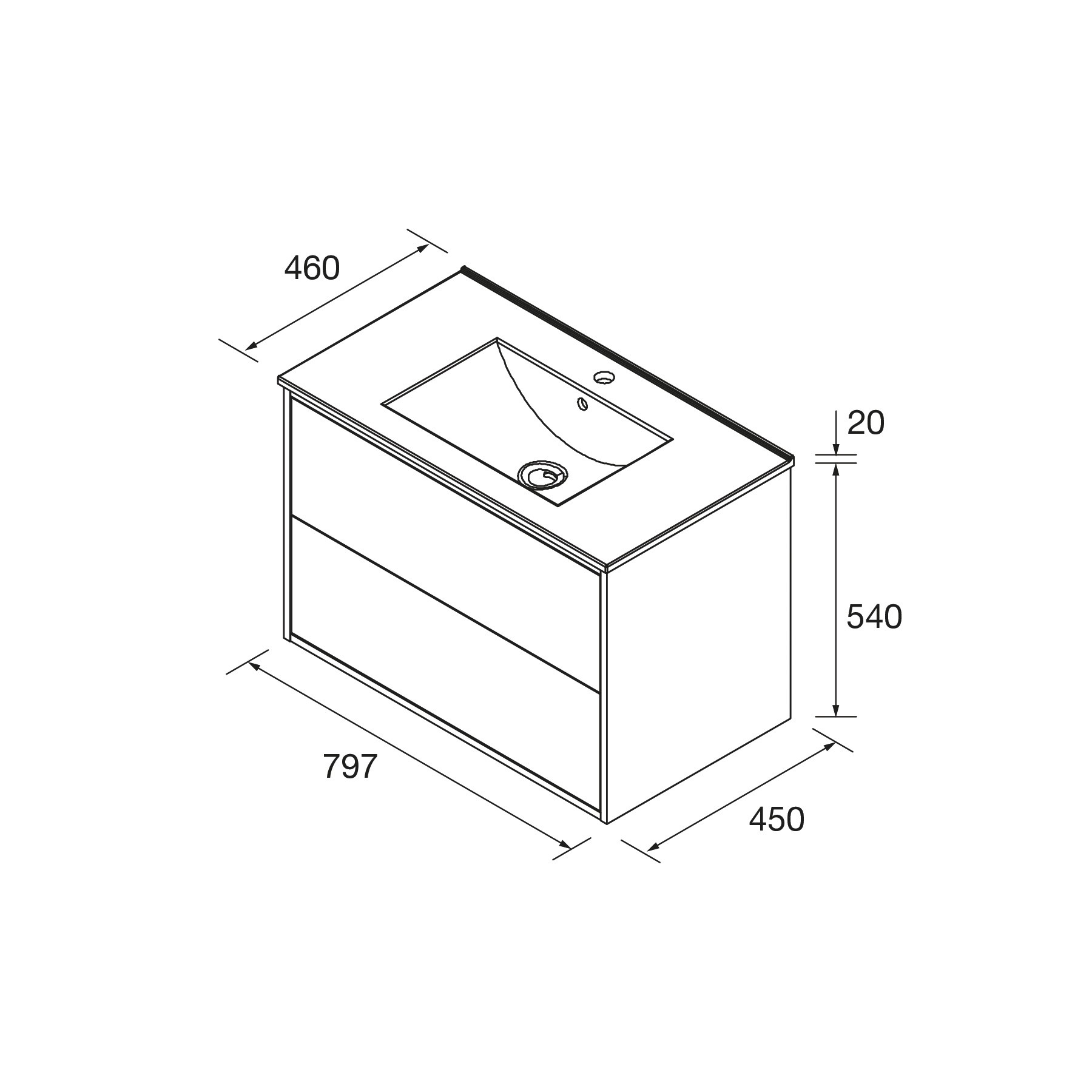 Salgar Optimus 800 Natural, alsószekrény+mosdó, 797x450x540 mm, cikksz.: 104612